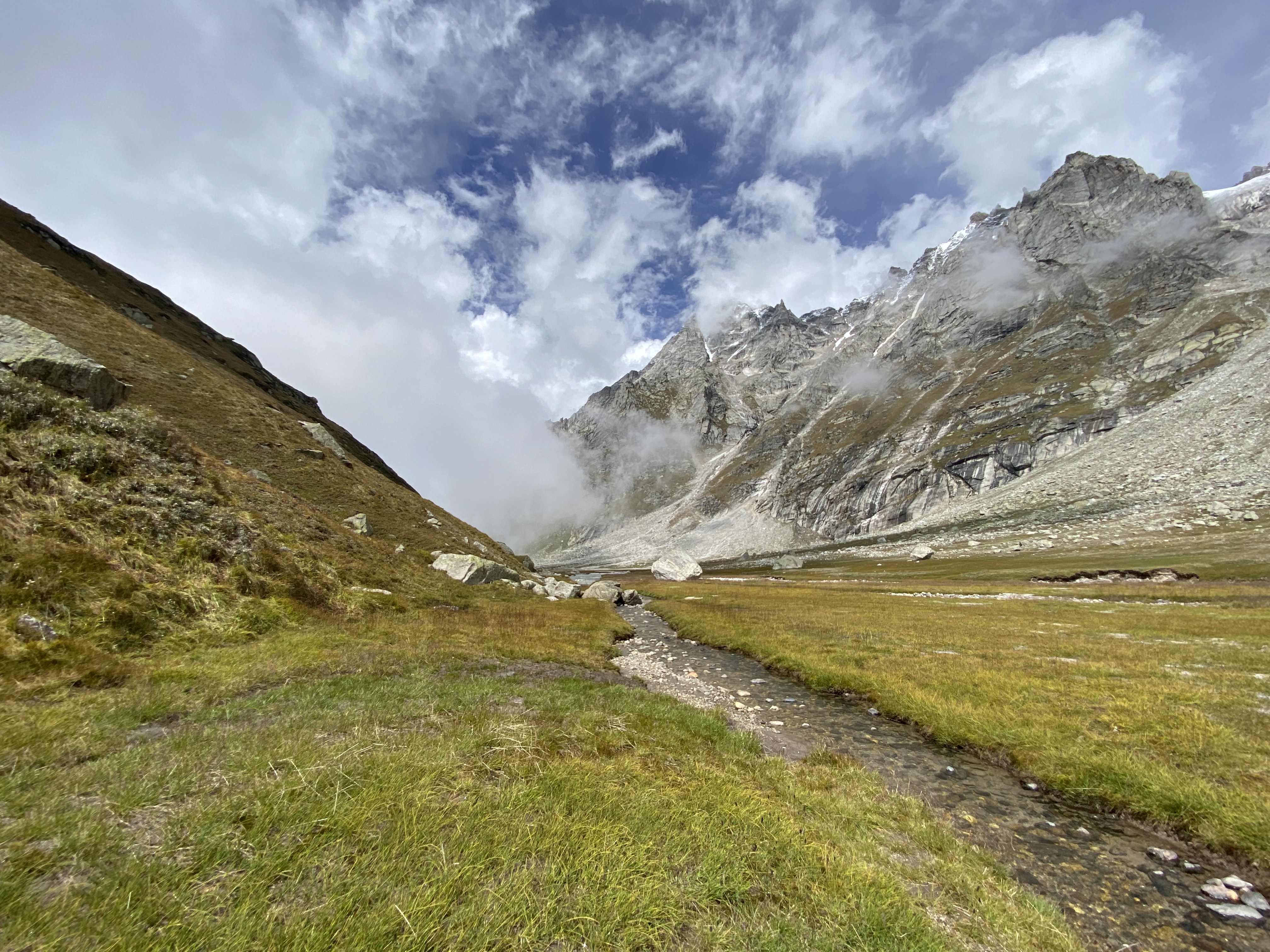 On Day 2, trek through serene forest trails and meadows blanketed in wildflowers to reach Pandu Ropa, an enchanting alpine plateau. The next day, continue along the Duhangan River toward Seri, a lush meadow that once was a glacial lake. This segment rewards trekkers with a breathtaking view of Deo Tibba emerging dramatically against the skyline.