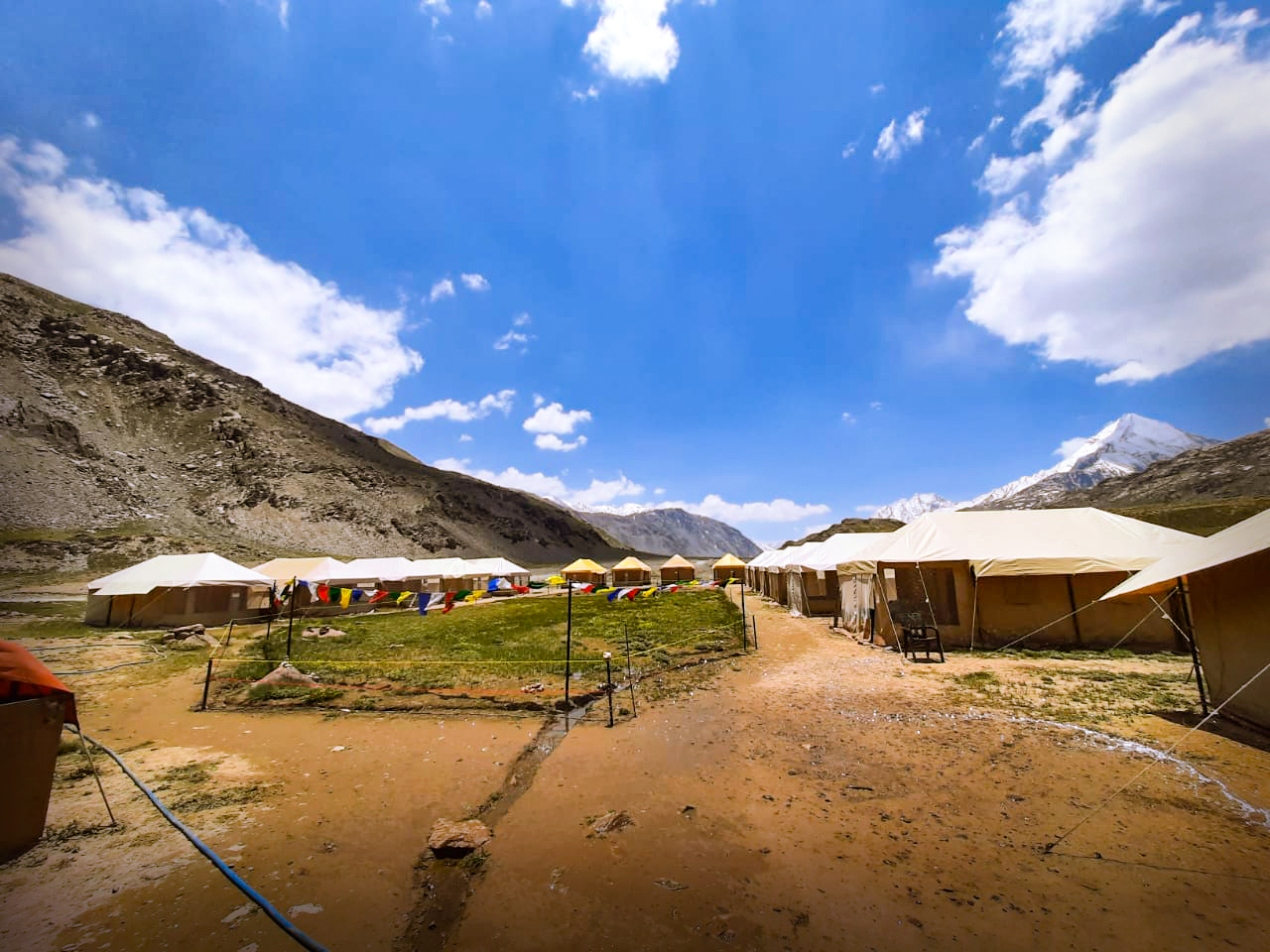 Surrounded by snow-capped peaks, barren terrain, and the crystal-blue lake, this camping experience blends basic comforts with unmatched natural beauty. Tents are well-equipped with warm bedding, insulated linings, and clean washrooms to help you rest after a long day of travel or trekking.