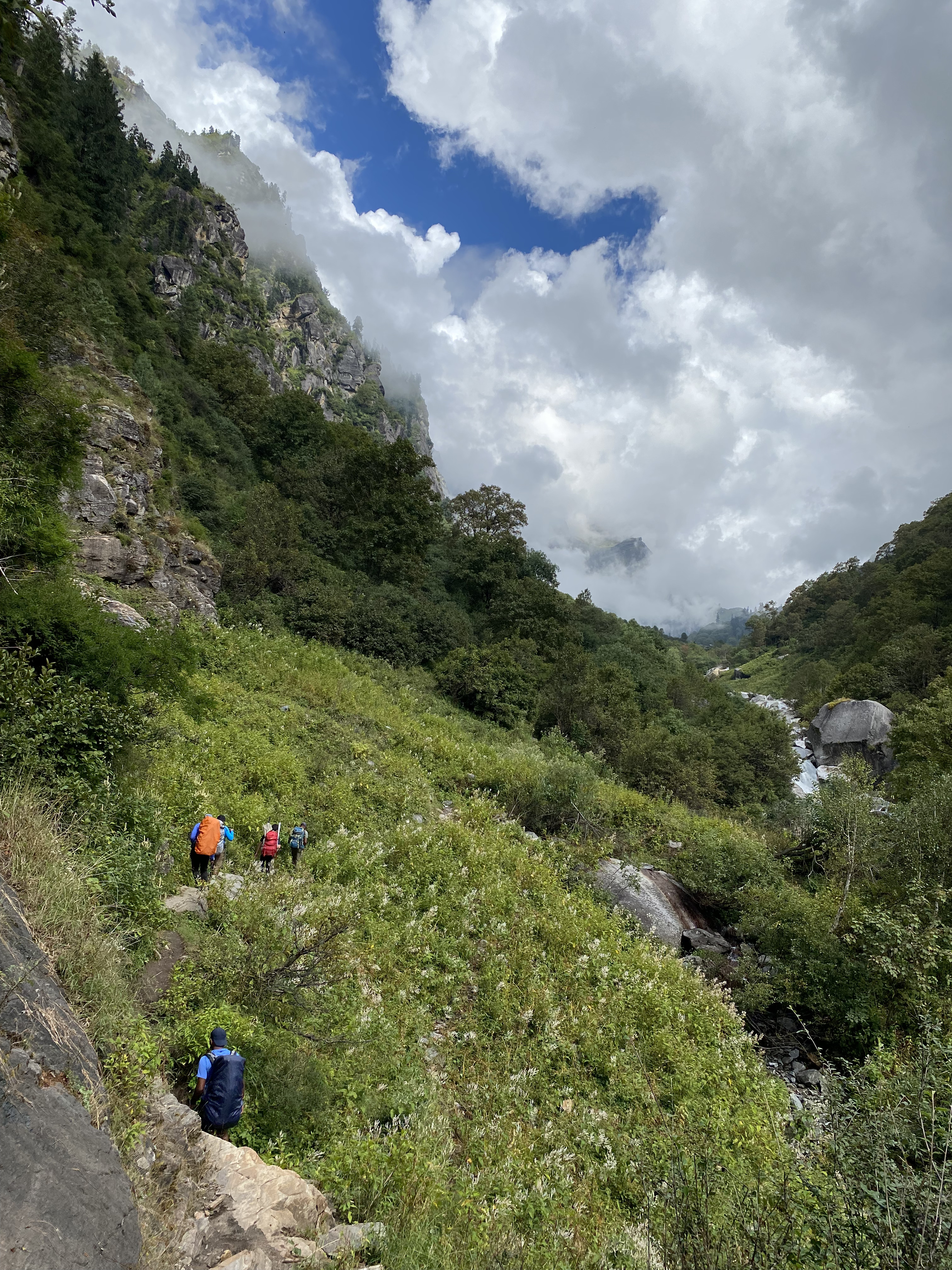 Walk along the Rani river heading into a rectangular valley.On your way you will find a variety of tiny flowers-purple,yellow,pink etc.The trees are now left behind.You will now cross a small stream on your way .After crossing the stream you will reach to the second camp site.Overnight stay in tents.